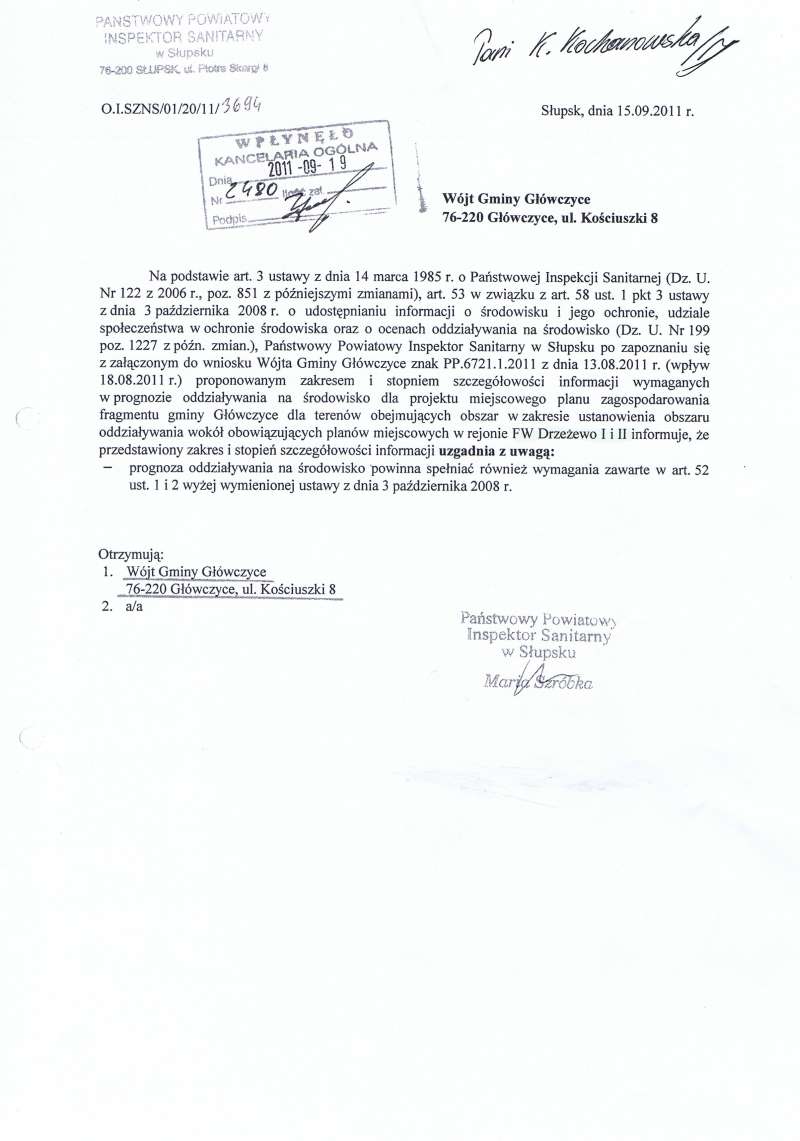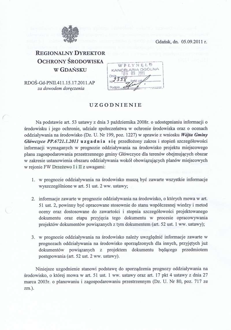 O wyłożeniu do publicznego wglądu projektu miejscowego planu zagospodarowania przestrzennego fragmentu gminy Główczyce dla terenów obejmujących obszar w rejonie planowanej Farmy Wiatrowej Drzeżewo I